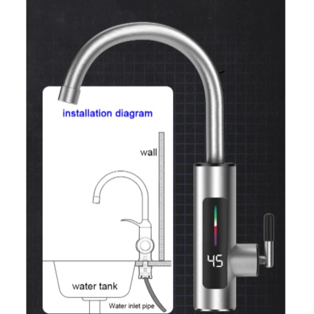 Robinet Electric Instant Apa Calda din Inox, 3000W, Rotire 360°, Display Digital